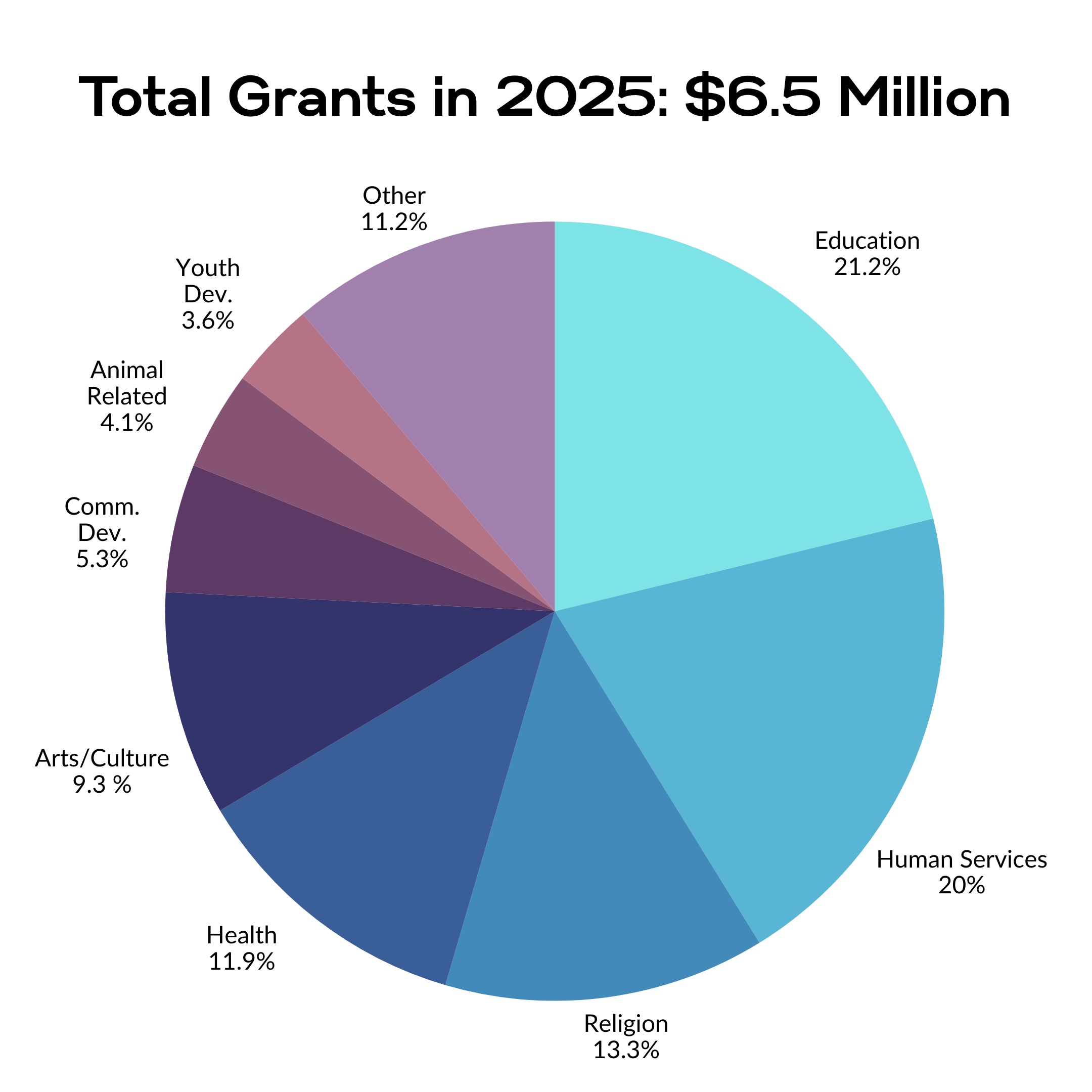 Financial Strength: In 2025 the Foundation received contributions of more than $11.5 million. We granted more than $6.5 million back into our community in support of education, health and additional fields of interest.